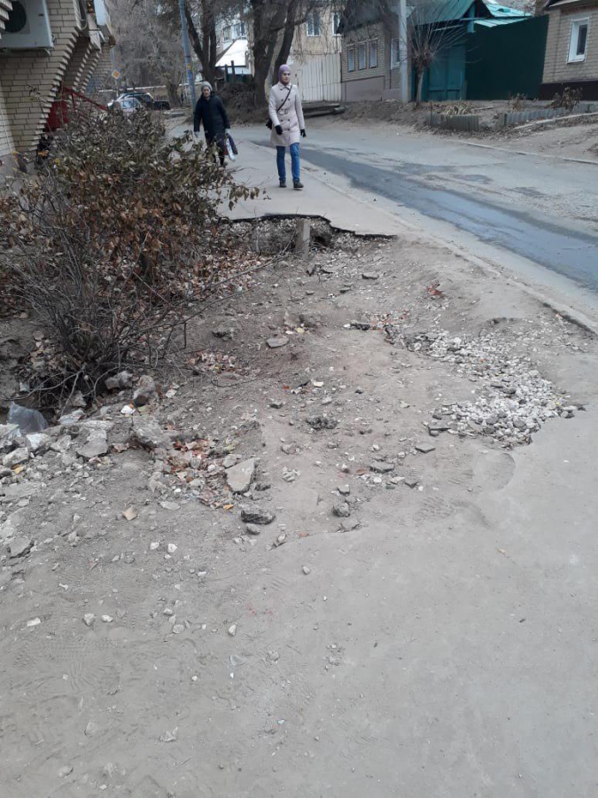 «После ремонта теплотрассы покрытие тротуара не восстановлено, и людям приходится идти по проезжей части, на которой в часы пик интенсивное движение транспорта», - написал Иван.