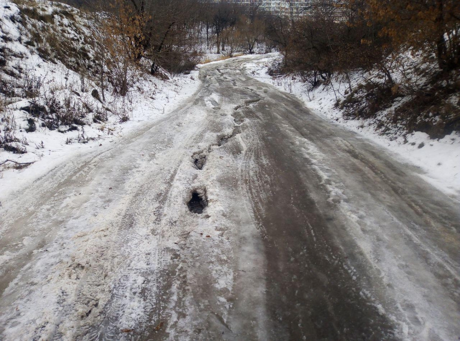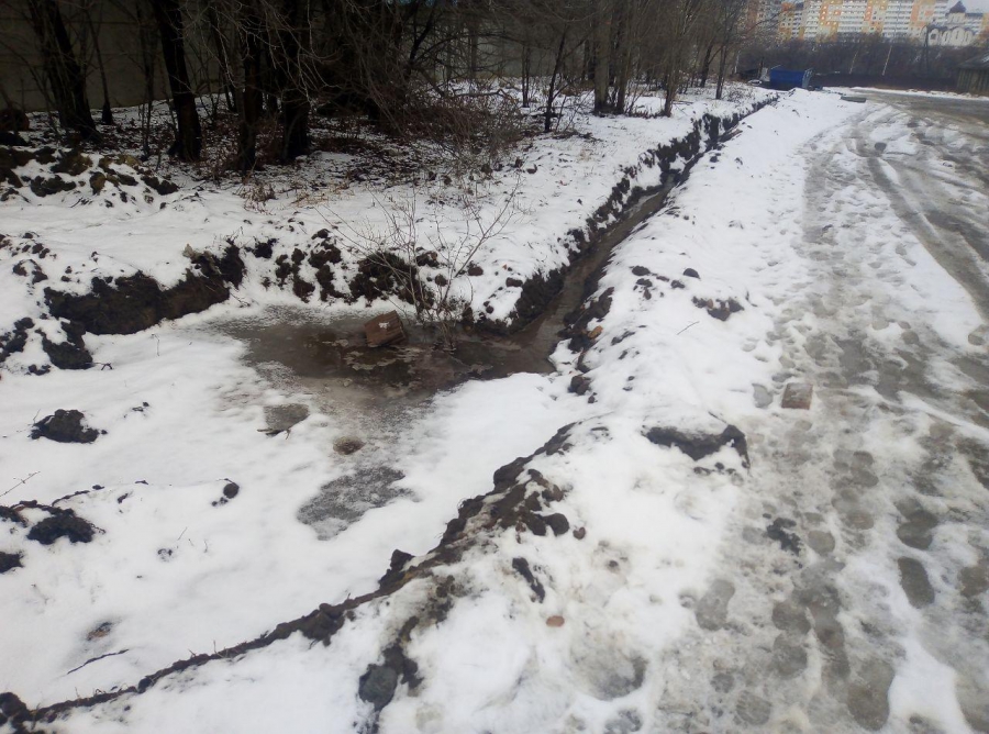 Месяц назад недалеко от дома №7а по 1-й Гуселке произошла коммунальная авария, в результате излива воды были затоплены улицы поселка Семхоз и образовались ледяные надолбы на проезжей части. Коммунальные службы вырыли траншею в сторону пруда, чтобы отвести воду от дороги, но авария так и не была устранена.