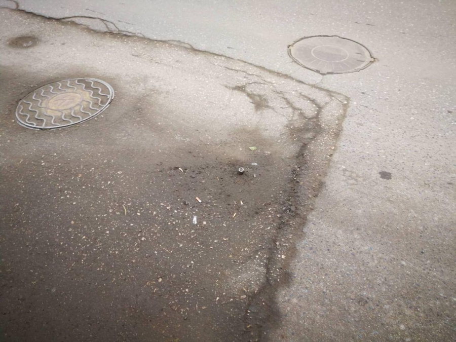 Разрушения образовались на участке с восстановленным покрытием после вскрышных работ рядом со смотровыми колодцами. По краям просевшего участка образовались глубокие ямы, заставляющие водителей оттормаживаться или объезжать препятствие.
