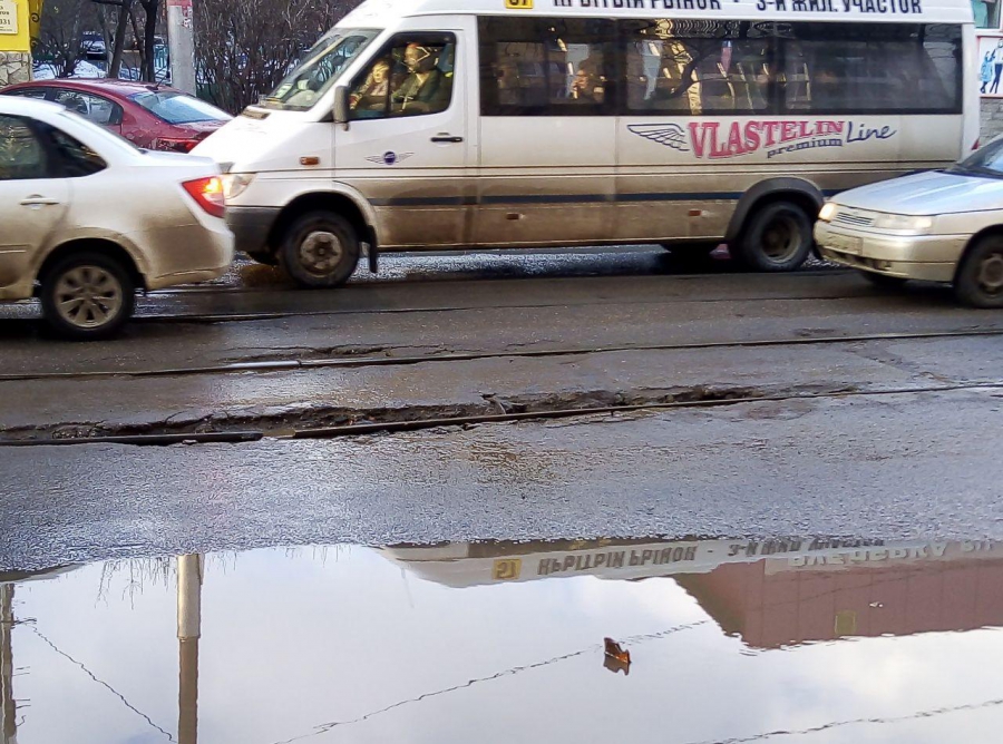 Ямы вдоль трамвайных путей и на межрельсовом пространстве начали появляться на улице Степана Разина сразу после ремонта дороги в 2016 году. И регулярно появляются снова, несмотря на периодический ямочный ремонт.