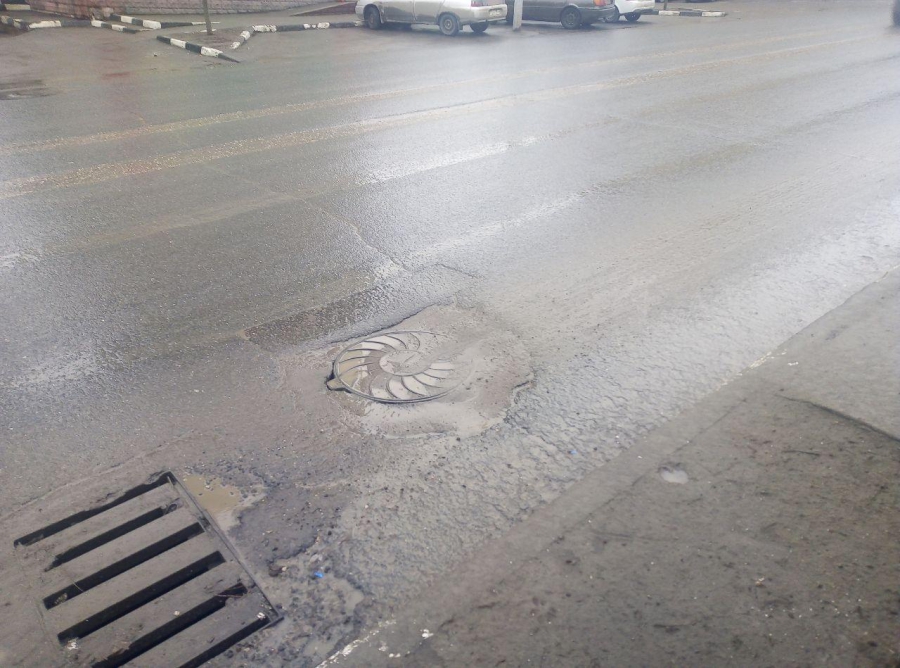 Просевшие люки и дождеприемники затрудняют движение по улице Мясницкой