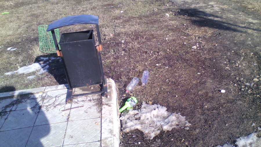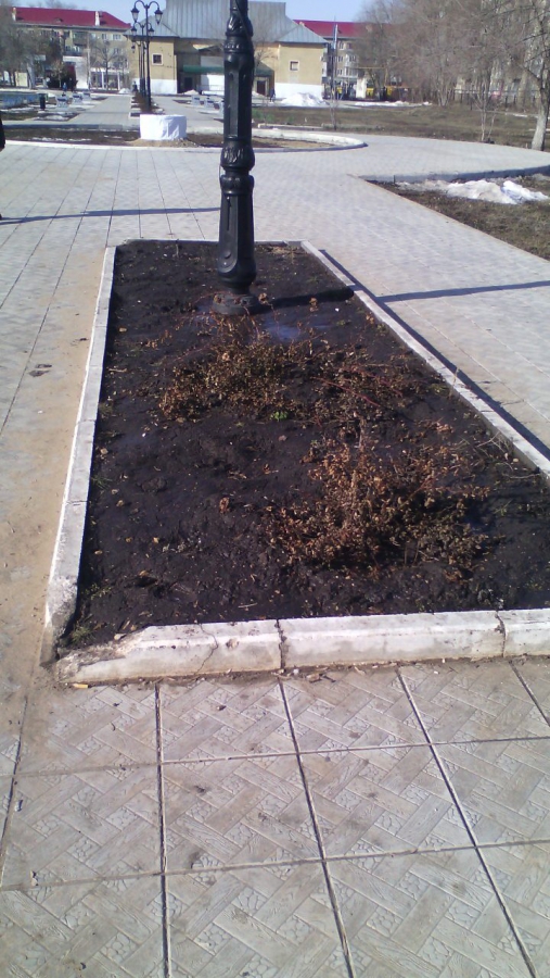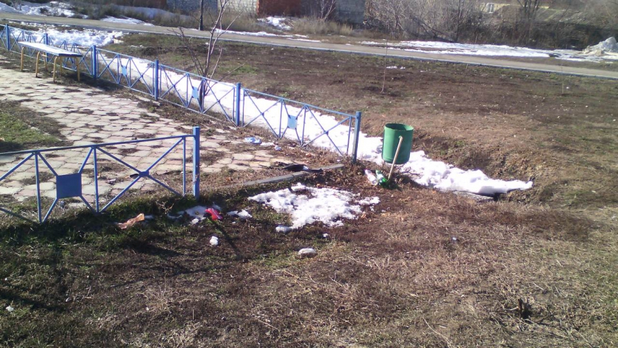 Бордюры тоже оставляют желать лучшего: помимо того, что они покосились, так еще и частично разрушены. Вероятно, их поломали при уборке снега, как и в прошлом году. Кроме того, по всему парку валяется мусор.