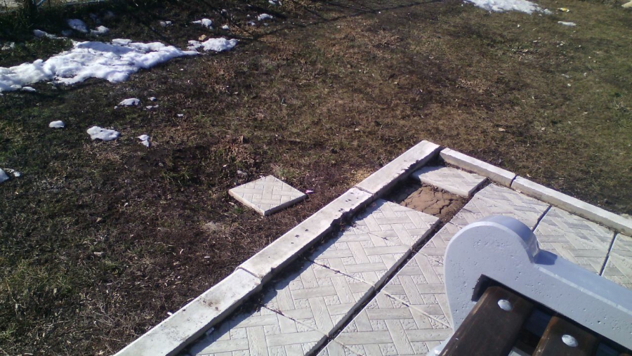На этот раз ершовцы обратили внимание на расползающуюся в разные стороны тротуарную плитку, еще немного, и в щель между плитками сможет поместиться нога ребенка. Местами плитка вообще валяется в стороне, обнажив основание.