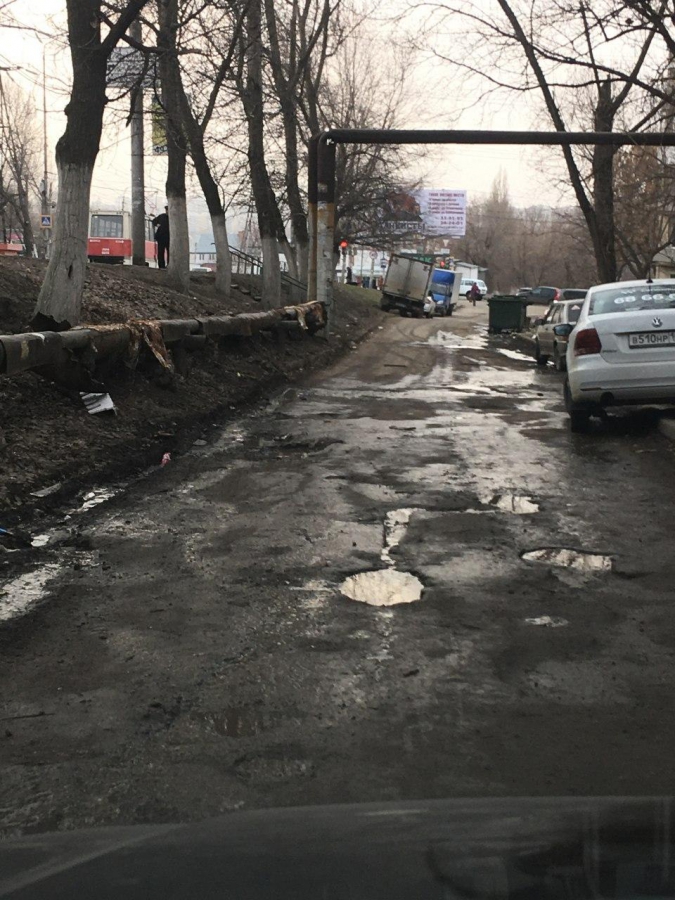 «Дорога-дублер улицы Танкистов имеет множественные провалы и ямы. У домов №63, 61, 59 они мешают движению автомобилей», - написал саратовец.