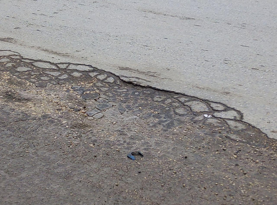 Наиболее активно разрушается участок покрытия, непосредственно прилегающий к остановочному павильону. И, судя по ровным границам аварийного участка, покрытие в этом месте перекладывали уже после ремонта улицы Тархова.