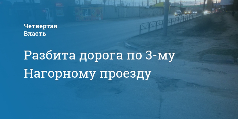 Жители Заводского рйона Саратова сообщили в редакцию о ненормативном состоянии дороги по 3-му Нагорному проезду. Глубокие выбоины заняли всю ширину проезжей части, особенно мешая водителям при выезде на Ново-Астраханское шоссе.