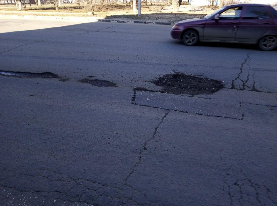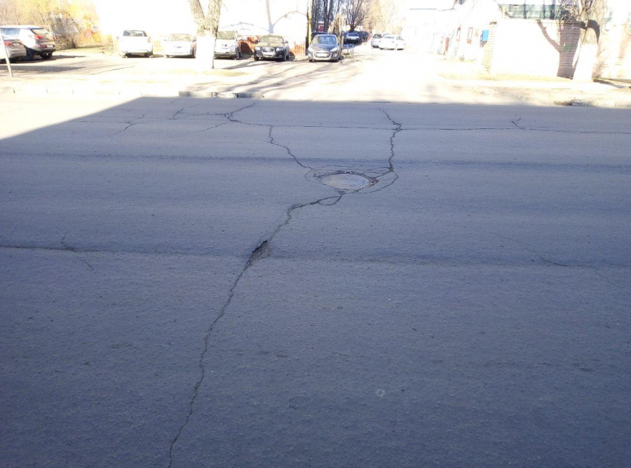 С каждым месяцем на асфальтобетонном покрытии этой важной и загруженной дороги появляются новые ямы. Этому способствуют многочисленные трещины, протянувшиеся по всей ширине проезжей части.