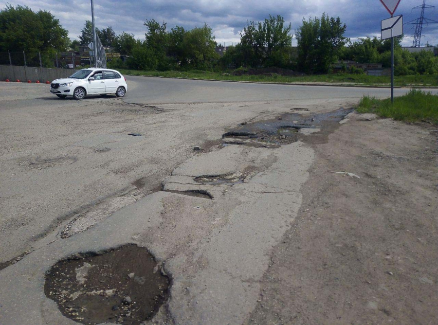 О том, что дорога находится в ненормативном состоянии и опасна для движения транспорта, «Дорожный контроль» сообщал в начале апреля. Но за минувшее время ситуация не изменилась в лучшую сторону. Ямы продолжают увеличиваться в размерах, а во многих выбоинах торчат куски арматуры, обнажившиеся из разбитых плит в основании дороги.