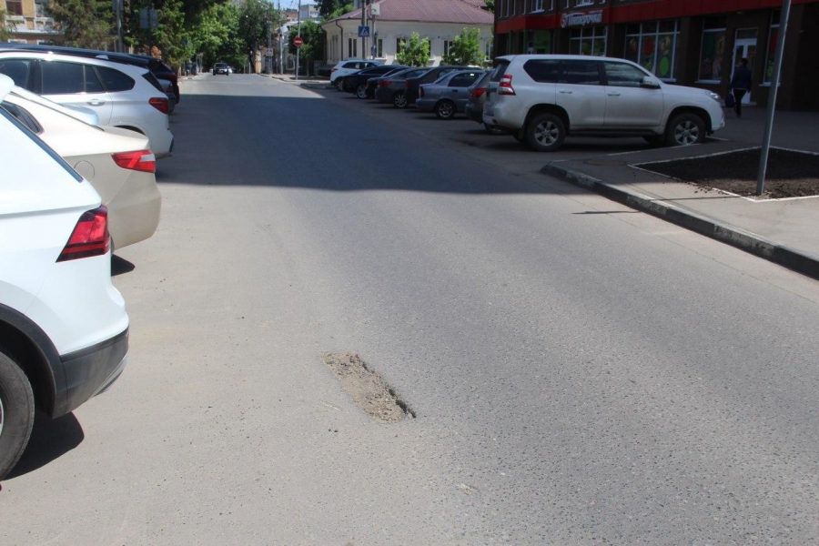 На улице Мичурина, отремонтированной в 2017 году в рамках федерального проекта «Безопасные и качественные дороги», на дорожном покрытии образовалось две опасные просадки. Наиболее глубокая из них расположилась у дома №186, заняв крайнюю левую полосу для движение. Разрушения появились на месте восстановленного после вскрышных работ покрытия, и яма достигла угрожающей для безопасноти транспорта глубины.