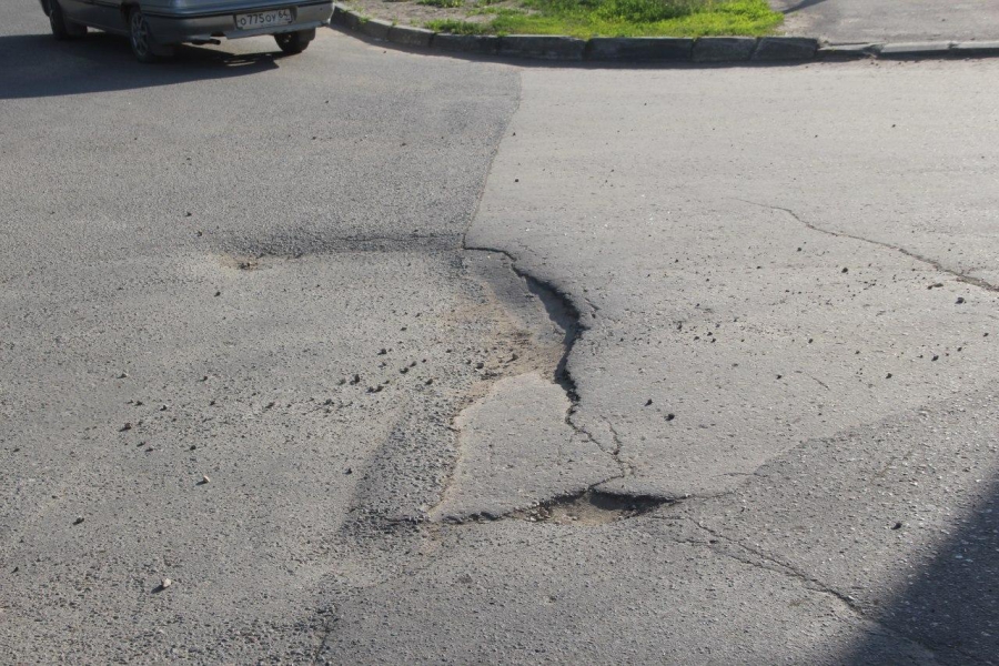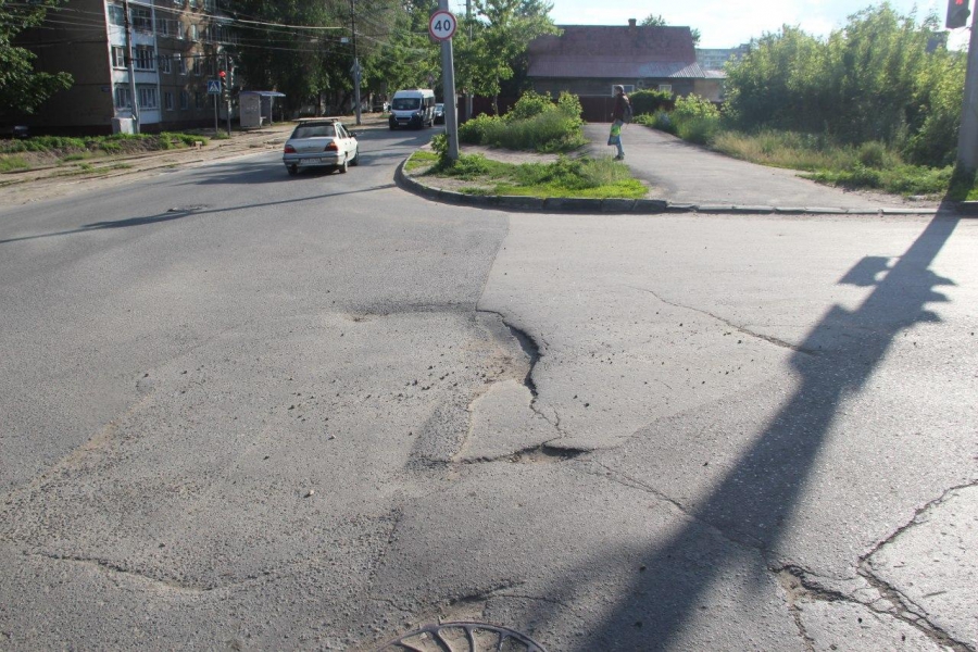 Одна из них расположилась по центру проезжей части непосредственно перед выездом на перекресток, грозя в скором времени превратиться в провал.