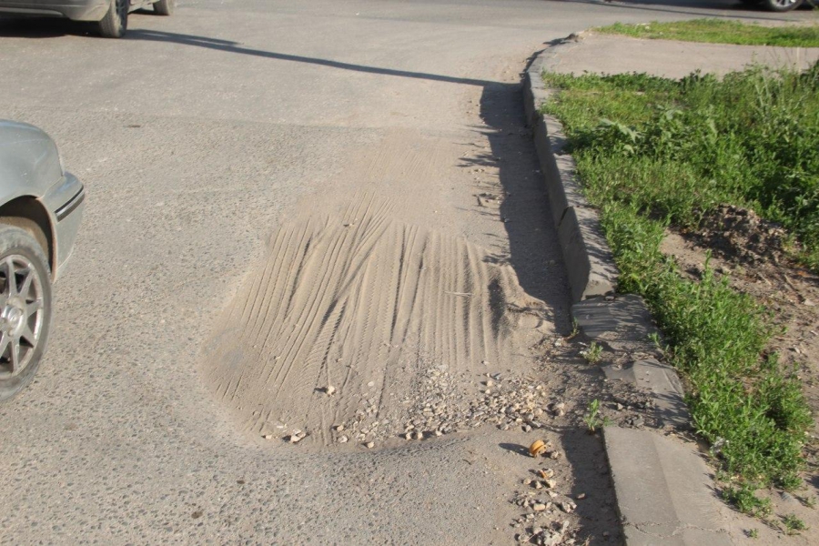 На улице Усиевича в Заводском районе Саратова, рядом с пересечением с Огородной, движению транспортных средств мешают глубокие просадки.