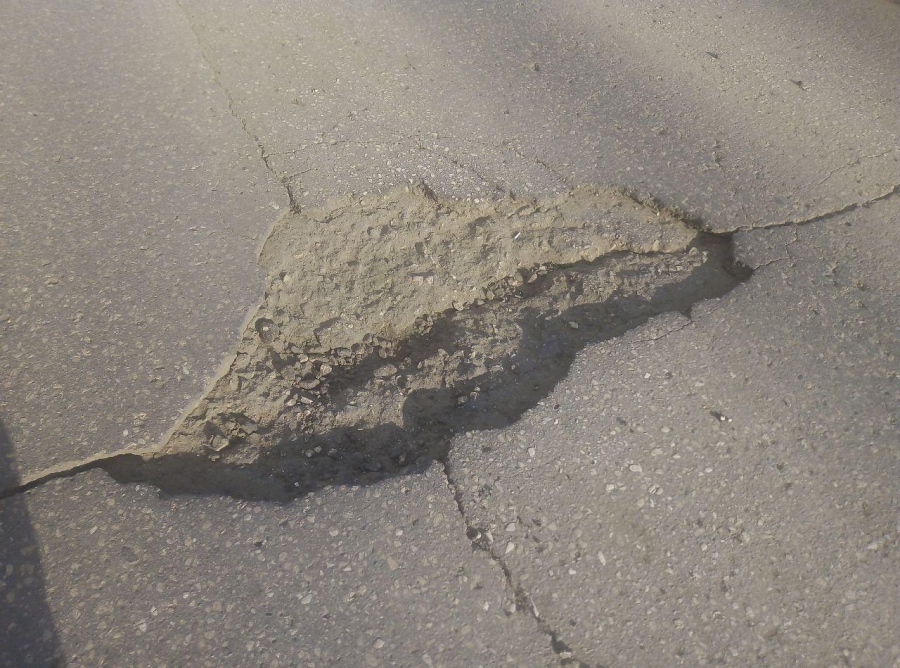 В сторону улицы Кузнецова выбоин хоть и становится меньше, но в размерах они значительно увеличиваются. Рядом с домом №13 расположились по центру проезжей части две ямы, объехать которые возможно, лишь вплотную прижимаясь к тротуару.