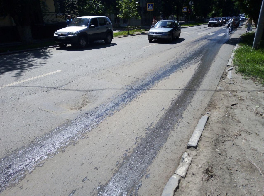 Одна из просадок расположилась рядом с домом №157, заняв полностью крайнюю правую полосу для движения. Яма появилась на участке восстановленного покрытия, на месте вскрышных работ. Похожие разрушения наблюдаются и на участке рядом с домом №113, где проседает участок после работ коммунальных служб.