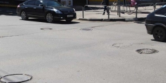 Другая просадка расположилась на пересечении улицы Рахова и Большой Казачьей. Машины, проезжающие перекресток по обеим улицам, не могут миновать препятствие и подпрыгивают, словно на трамплине. Об этом ставшем опасным перекрестке «Дорожный контроль» сообщал еще в середине мая, но до сих пор просадка не была устранена.