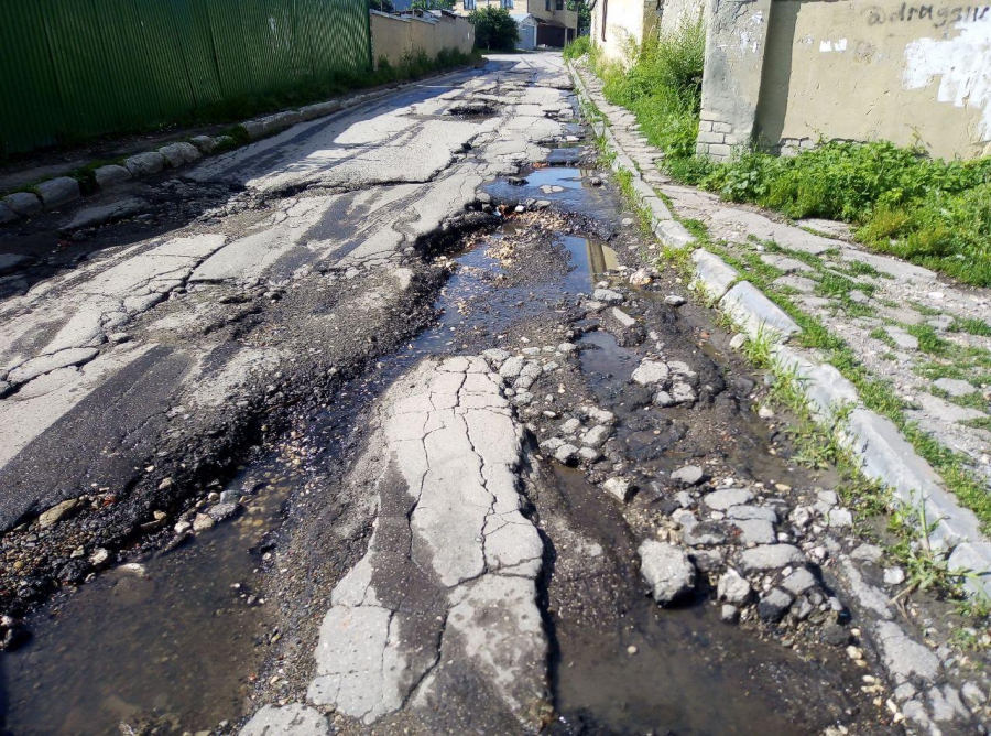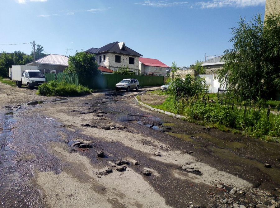 Постоянно текущий ручей из года в год размывает асфальт, делая дорогу непроездной для автомобилей. Преодолеть промоины, превратившиеся в небольшие озера, рискует все меньше автолюбителей. И если в прошлом году «Дорожный контроль» отмечал, что асфальт еще присутствует на дороге, то теперь от него уже почти ничего не осталось.