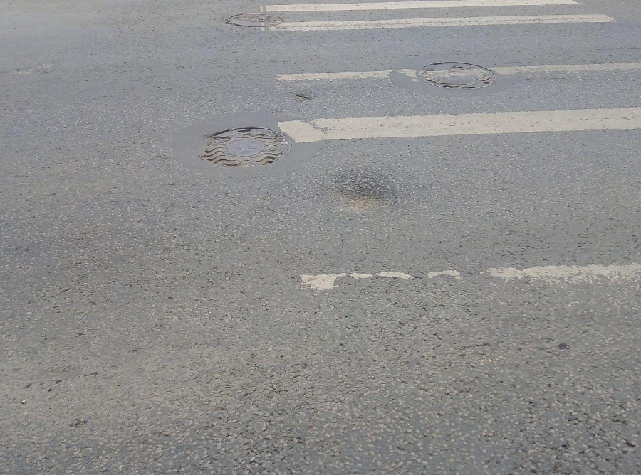 По соседству с ненормативным смотровым колодцем, на пешеходном переходе через улицу Астраханскую, начала образовыватся просадка, грозящая в скором времени также начать доставлять затруднения автолюбителям.