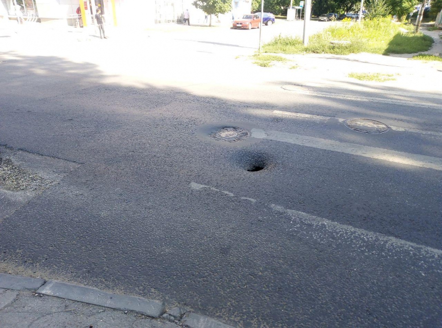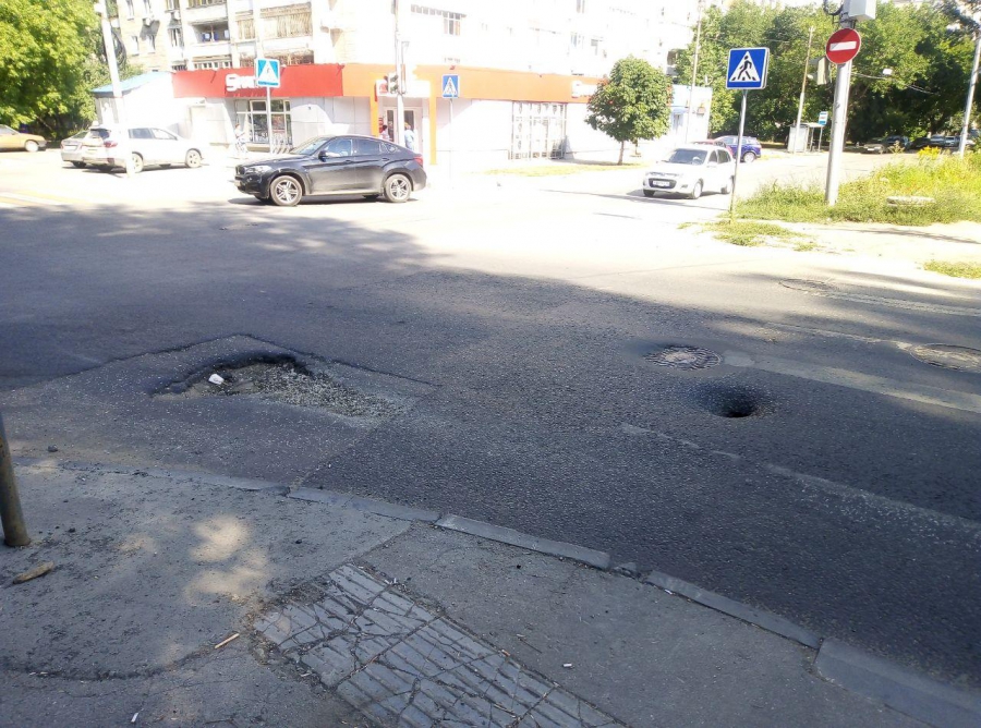 На пешеходном переходе через улицу Астраханскую, рядом с пересечением с Шелковичной, провалился асфальт.
