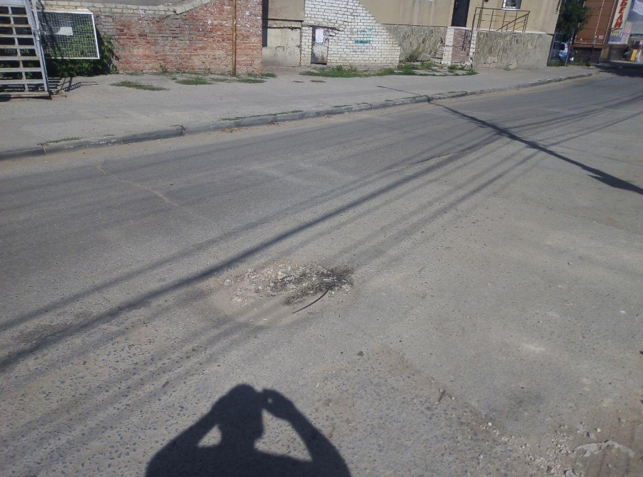 Дорожное покрытие на этой небольшой, но загруженной автомобилями улице не отличается ровностью. Многочисленные латки от постоянных ямочных ремонтов накладываются друг на друга.