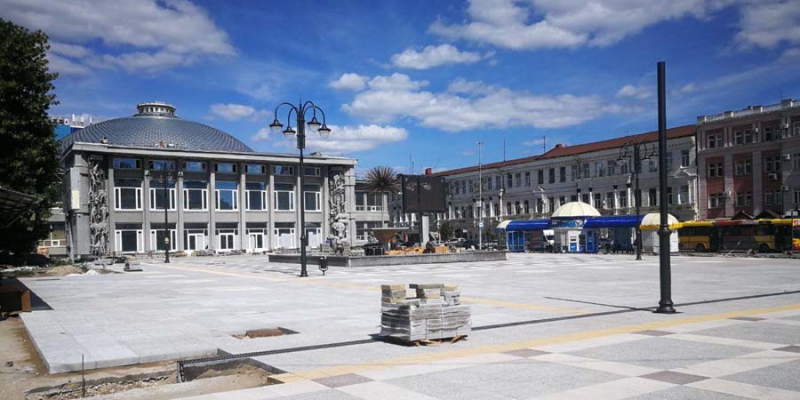 Подрядчик уложил плитку на площади перед цирком, на Аллее роз, залил бетон на одной из пешеходных дорожек. При этом в первозданном виде находится пешеходная зона, ведущая от Крытого рынка к кинотеатру Победа, на площади перед самим кинотеатром проведен лишь частичный демонтаж, а между площадью перед Цирком и Аллей роз расположился широкий котлован для замены подземных коммуникаций ПАО «Т Плюс».