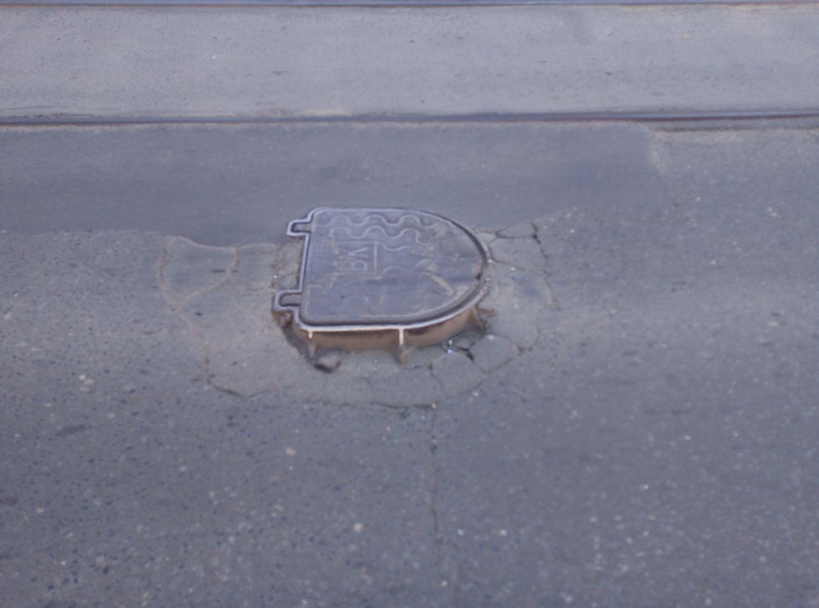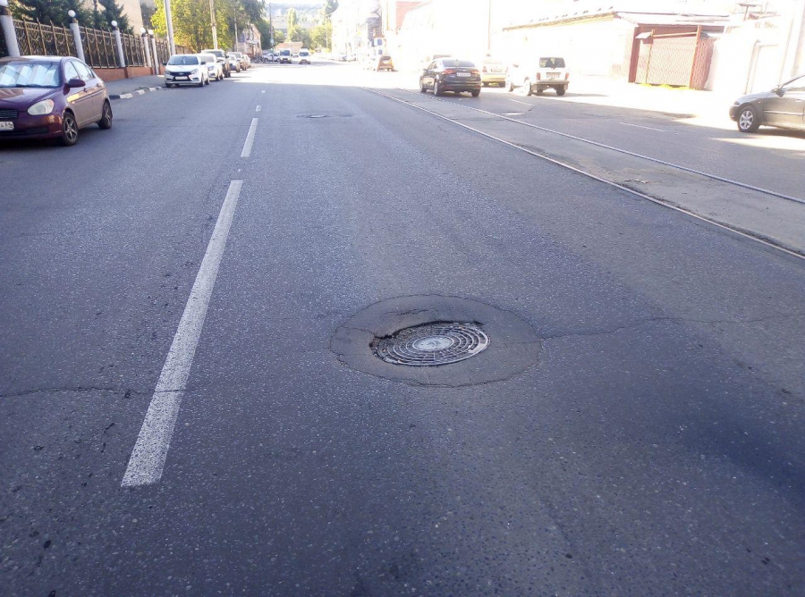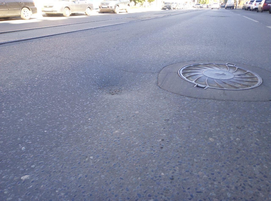 Улица Кутякова отличается интенсивным движением, при этом просадки вокруг смотровых колодцев на этой дороге стали уже постоянным явлением.