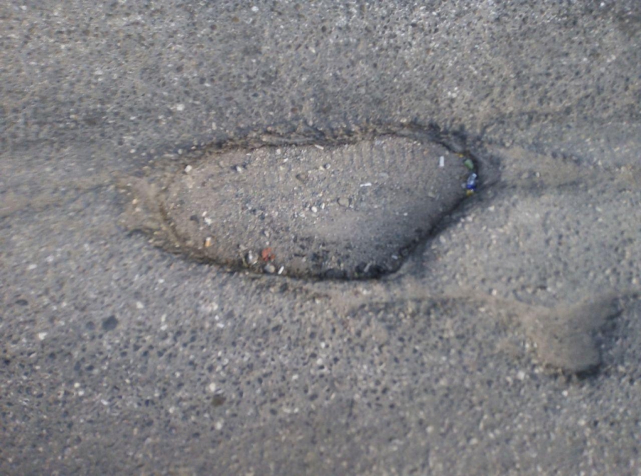 Восстановленное покрытие просело, и такие ямы перекрывают полностью полосу. Автолюбители стараются такие подозрительные места объезжать по встречке, опасаясь образования провалов на месте просадок.