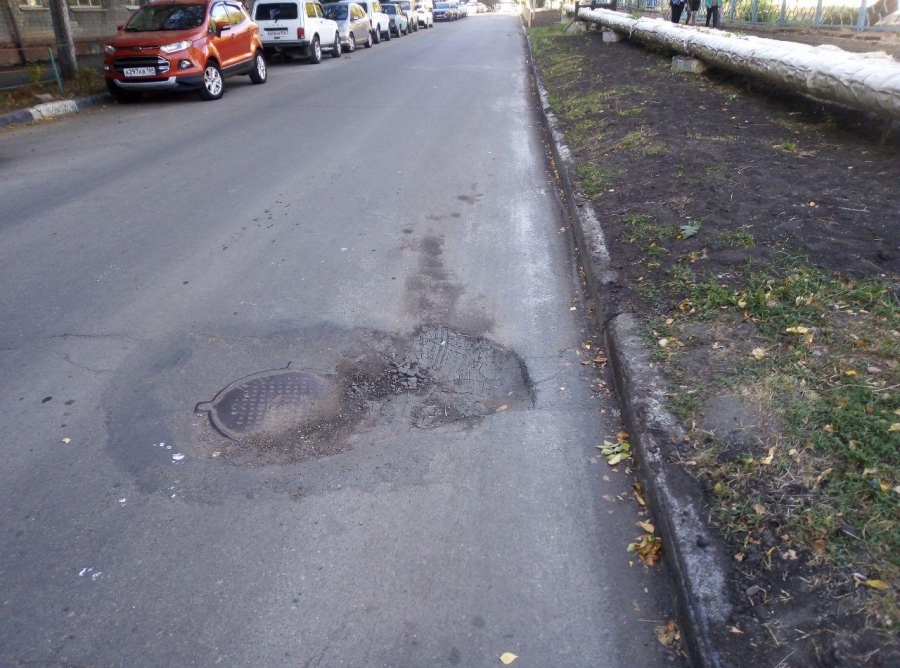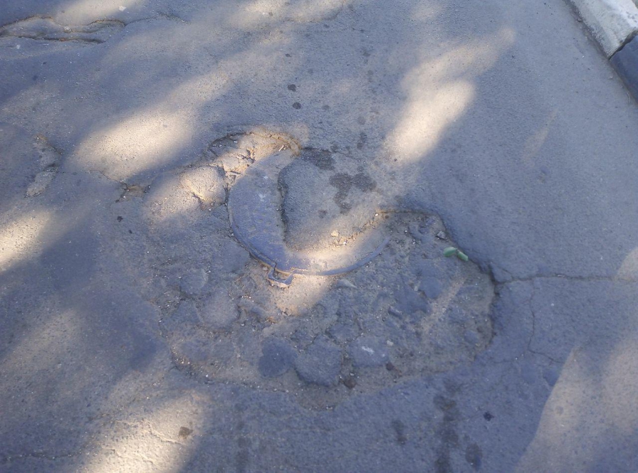 Значительно просевшие смотровые колодцы затрудняли движение по этой небольшой, но достаточно оживленной улице. По прошествии времени ситуация на этой дороге не изменилась. Люки продолжают занимать центр проезжей части, заставляя водителей передвигаться по дороге с минимальной скоростью.