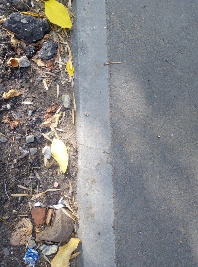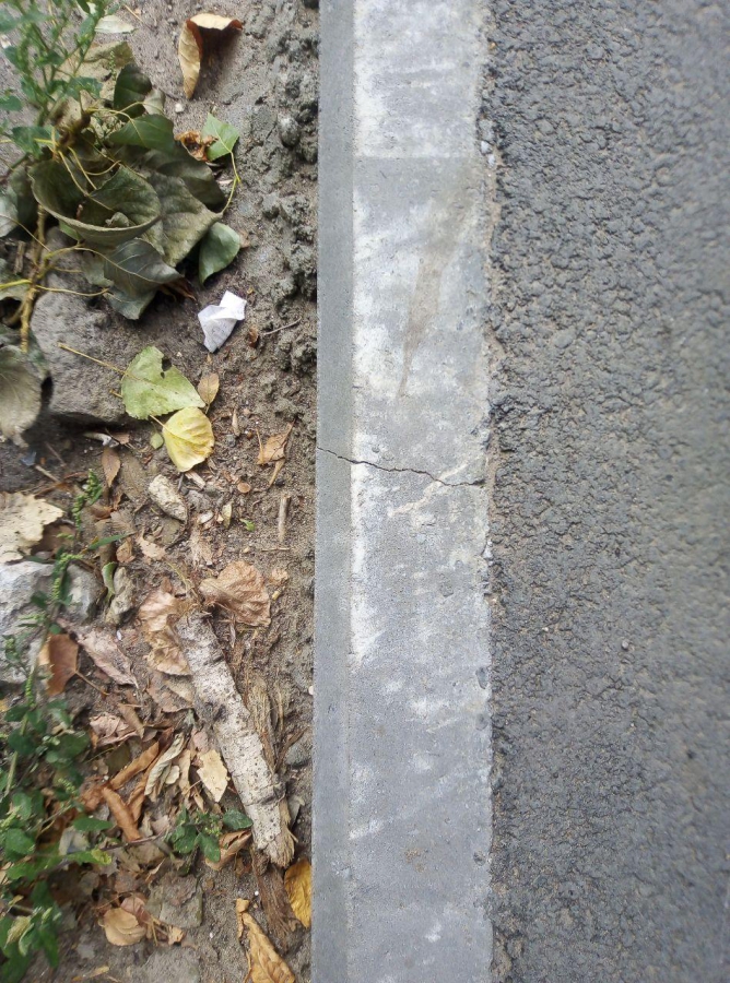 В отличие от улиц 4-й Прокатной и Антонова, щели на бортовых камнях даже не попытались замазать, в результате вместо положенного по контракту метрового борта на тротуаре находится несколько более коротких бордюров, которых по документам быть не должно.