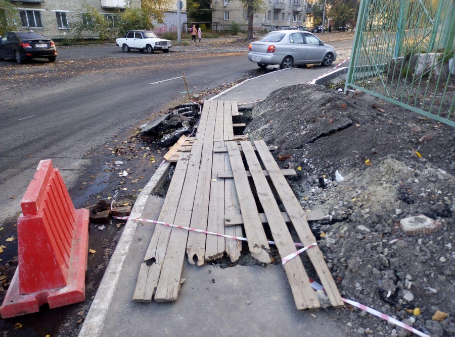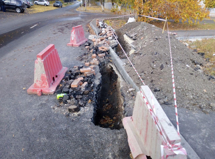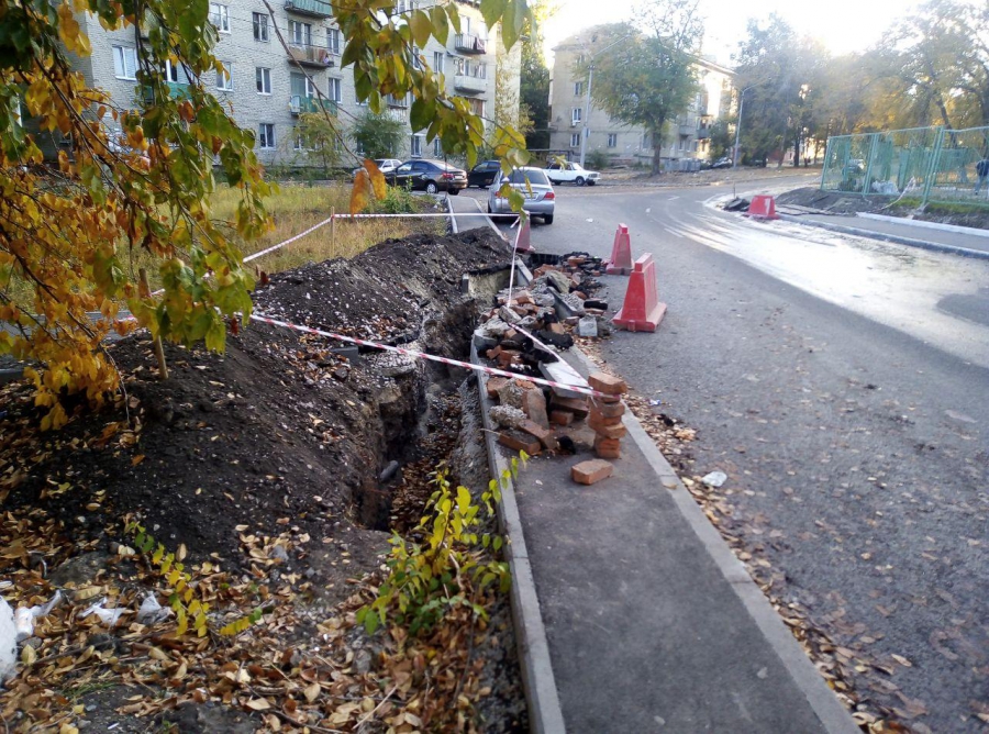 Раскопы затронули как новый тротуар, так и проезжую часть рядом с больницей №10.
