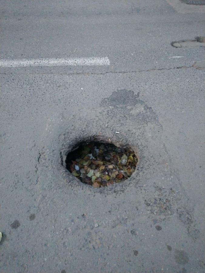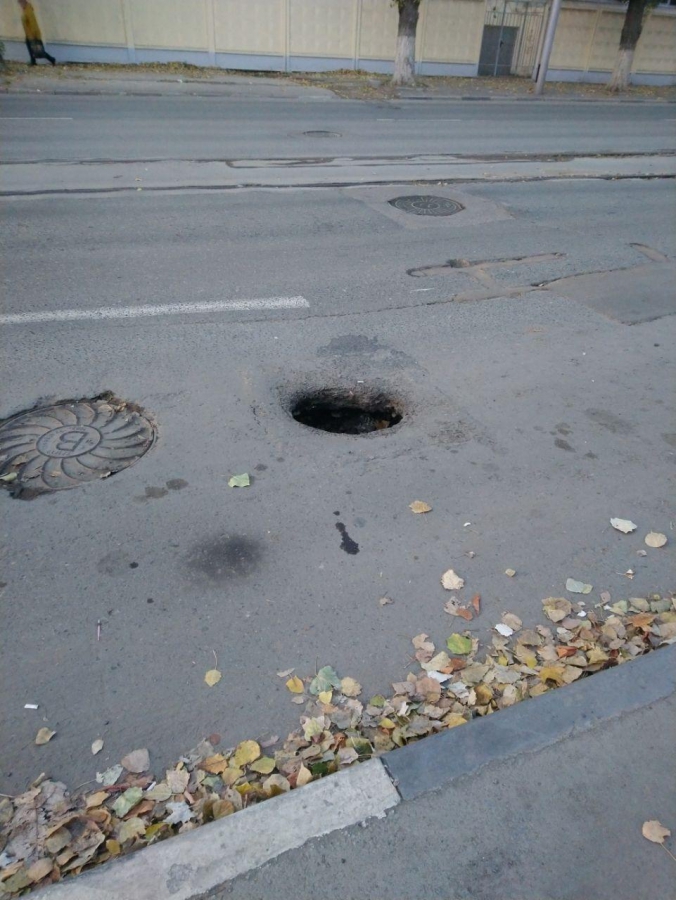 Яма заняла крайнюю правую полосу, создавая урозу для движения транспорта в направлении улицы Университетской. Препятствие никак не обозначено и не огорожено, из-за чего невнимательный автовладелец может повредить свой автомобиль.