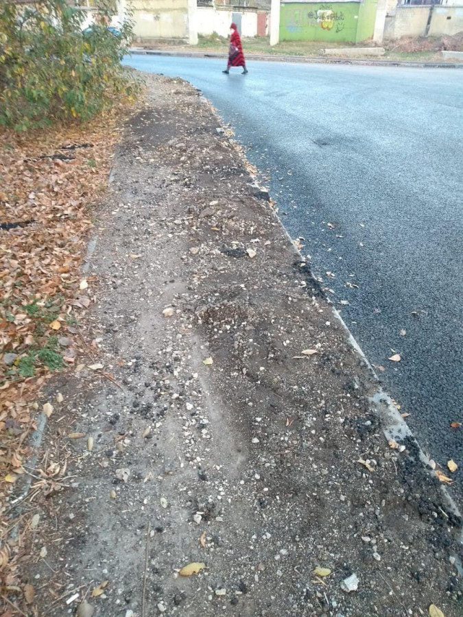 Как сказали местные жители, две недели назад работы по ремонту дороги были завершены, но за собой строители, видимо, решили не убирать. Куски асфальта и бордюра так и лежат на тротуаре, мешая проходу граждан.