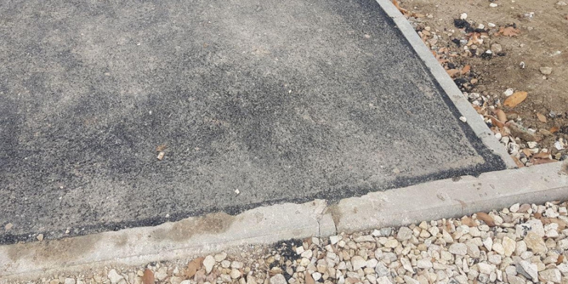 Новый бортовой камень поколот, а на новом покрытии есть следы шелушения.
