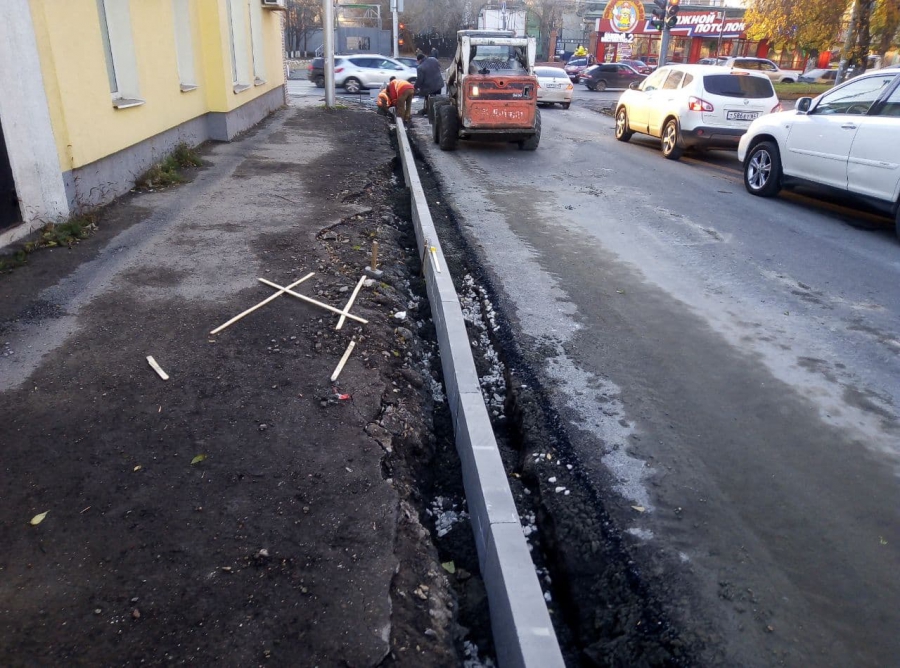 Бордюры в Саратове продолжают устанавливать на бетонные маяки