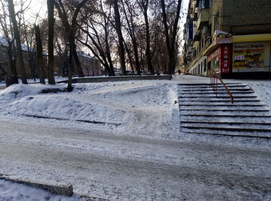 Обещали чиновники забетонировать ступеньки и восстановить поручни и на расположенной рядом лестнице, но и с ней ситуация не изменилась. В результате маломобильные группы граждан не могут воспользоваться пешеходной зоной по улице Вишневой, на подходе к городской поликлинике №16.