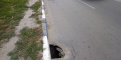 Яма, появившаяся с края проезжей части, угрожала безопасности движения в сторону улицы Мельничной. За минувшее время провал разросся, захватив пешеходную зону. Бортовой камень висит в воздухе, угрожая в любой момент разрушиться. Что скрывается под остатками покрытия, неизвестно, но уже сейчас неогороженная яма может стать причиной как серьезного ДТП, так и травм пешеходов.