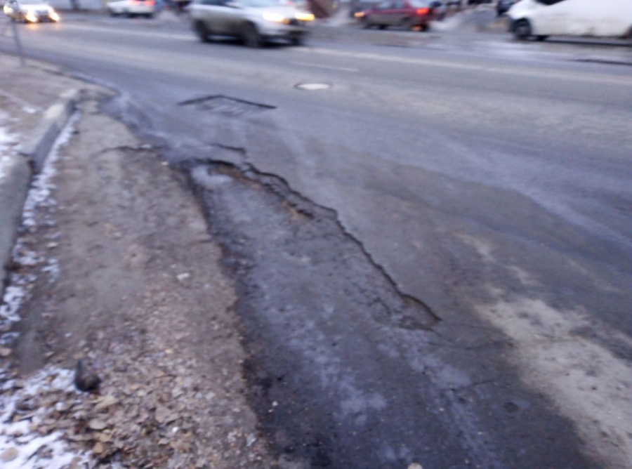 Выезд на улицу Танкистов с дублера затрудняют большие выбоины