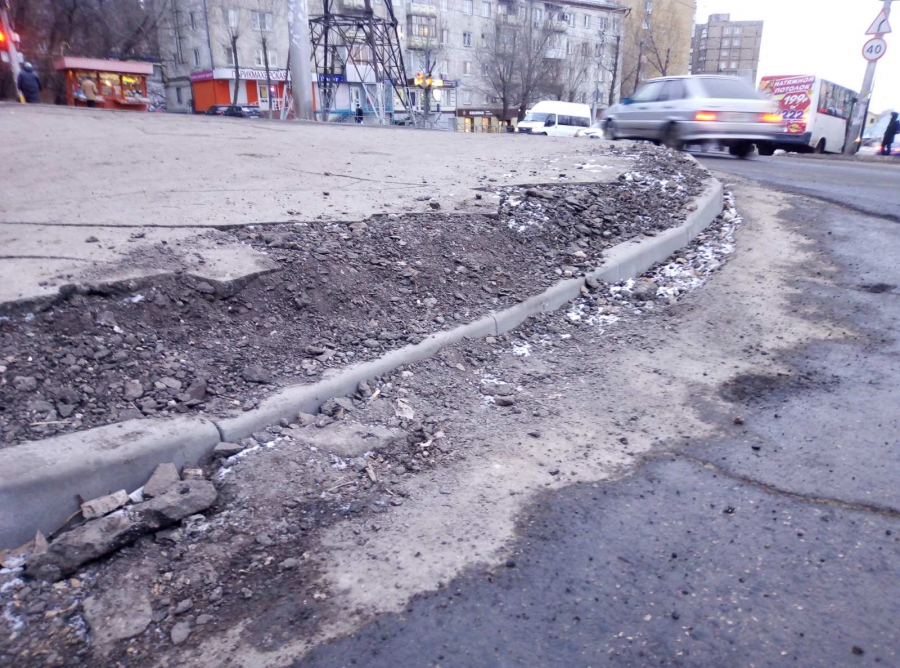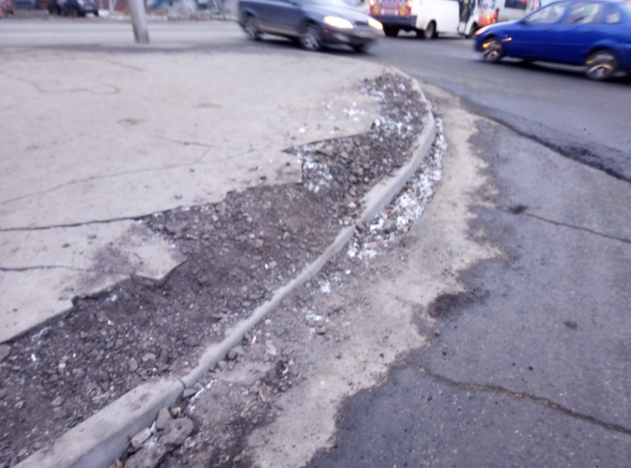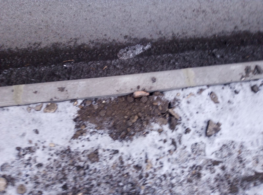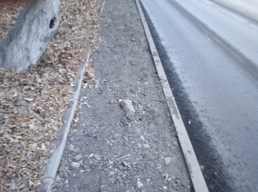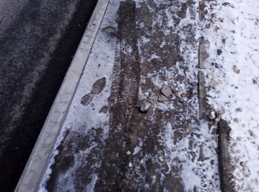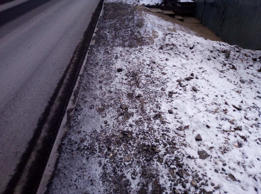 Кроме укладки асфальта была произведена замена дорожного бортового камня, в ходе которой был разрушен тротуар вдоль проезжей части. Засыпали образовавшиеся ямы уже подручным материалом: где-то землей, где-то асфальтной крошкой и строительным мусором.