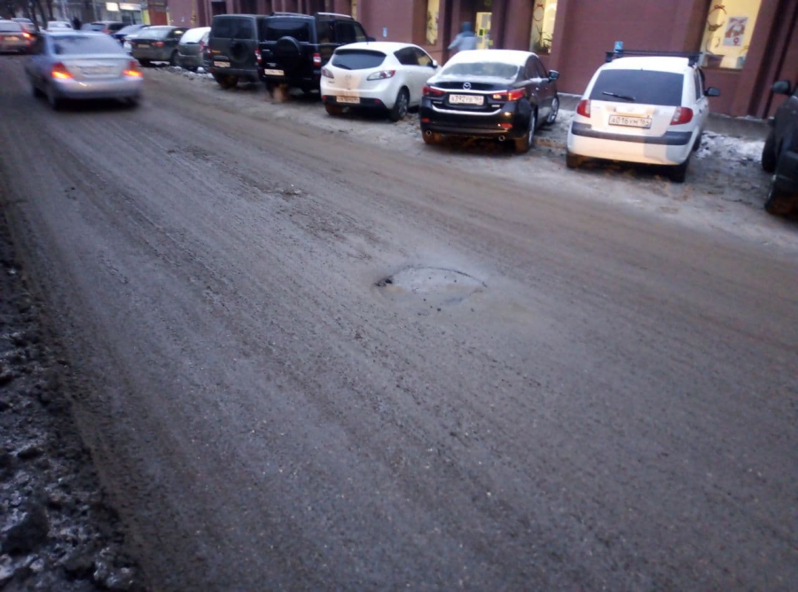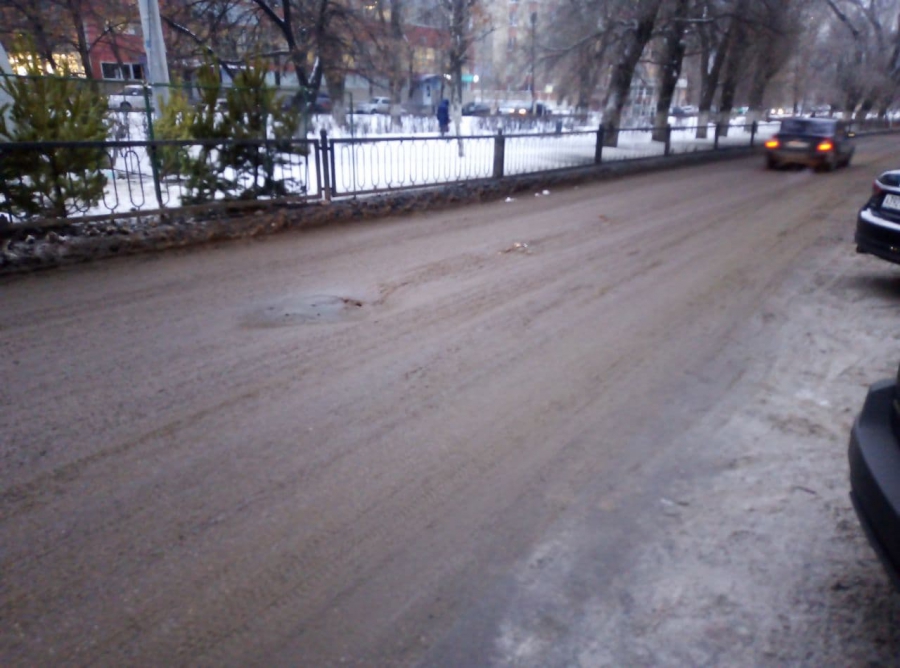 На улице Рахова, рядом с пересечением с Зарубина, образовалась глубокая просадка. Водители часто не замечают препятствие на заснеженной дороге, попадая в яму колесом, рискуя повредить свои автомобили.