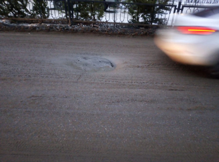 Об этой яме «Дорожный контроль» сообщал два месяца назад, но ситуация лишь усугубилась. В любой момент на месте просадки может появиться провал под колесами автомобиля.