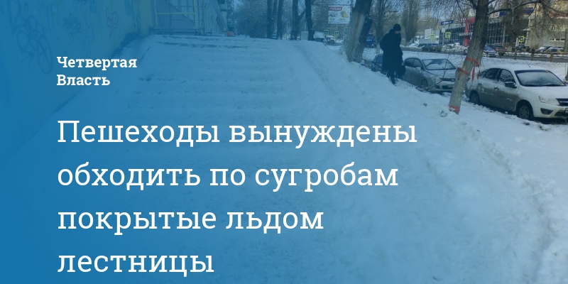 Пешеходы вынуждены обходить по сугробам покрытые льдом лестницы