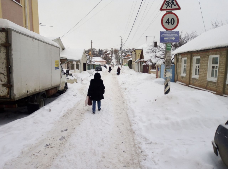 Об очистке тротуаров и вовсе не идет речь. Пешеходам приходиться пробивать тропинки в глубоком снегу, либо использовать проложенную автомобилями на дороге колею. При этом активно идет уборка от снега дворовых территорий, но выехать из них часто просто некуда.