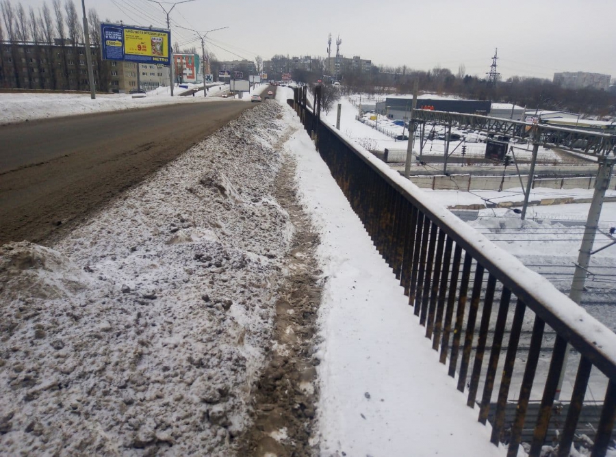 В редакцию «Дорожного контроля» поступают жалобы саратовцев о нерасчищенных улицах города. На этот раз жители города сообщили о том, что одну из сторон путепровода по улице Технической до сих пор даже не пытались расчистить, и саратовцам приходится передвигаться по натоптанной тропинке.