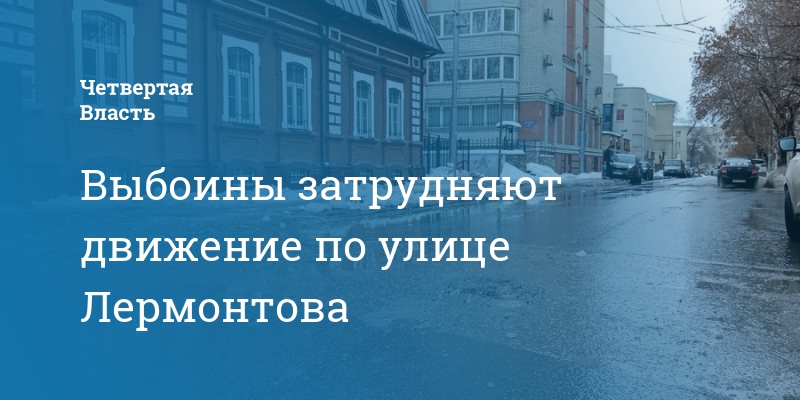 На улице Лермонтова у дома №14 образовались две глубокие выбоины по обеим сторонам дороги.