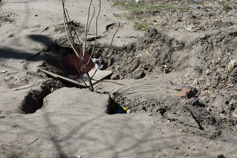 Изуродованный тротуар на Весенней и цепь провалов на Пономарева