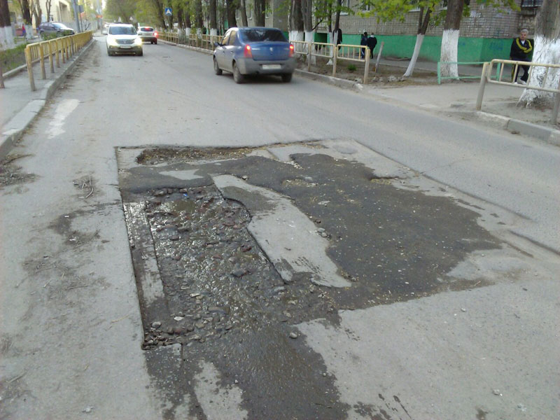 Жительница Волжского района Саратова Элина рассказала об изуродованном тротуаре возле дома и проезжей части на улице Весенней в районе областного Управления ГИБДД ГУ МВД. По ее словам, этой весной неизвестная компания проводила там вскрышные работы и оставила после себя многометровую широкую яму. Несколько недель назад после жалоб граждан «дорожники» заделали выбоину.