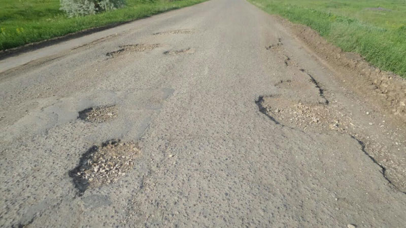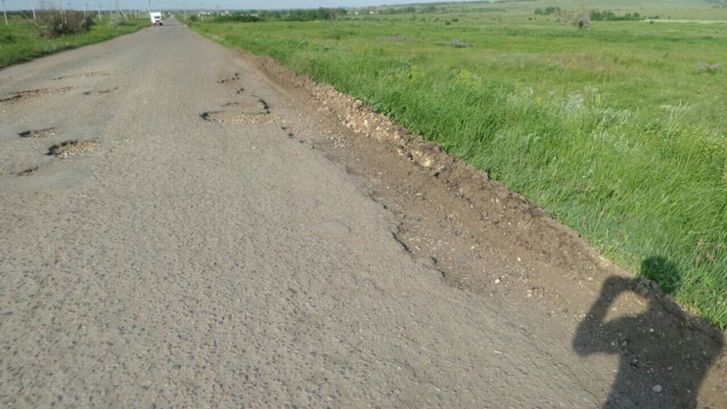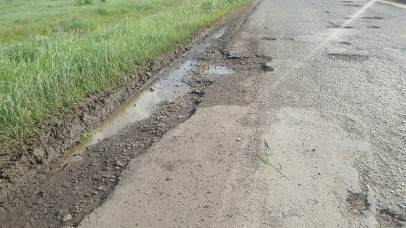 По его словам, ямочный ремонт дороги проводился год назад, и то были заделаны не все ямы. В этом году ситуация только ухудшилась – трасса покрылась ямами и трещинами. Разбивают дорожное полотно и грузовики, ездящие к теплицам селе Михайловка, в которых выращивают овощи.