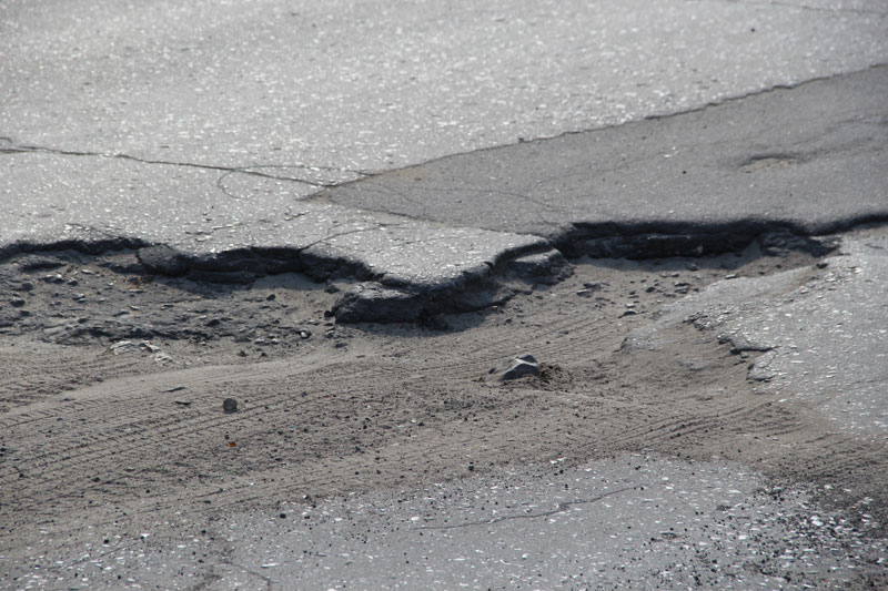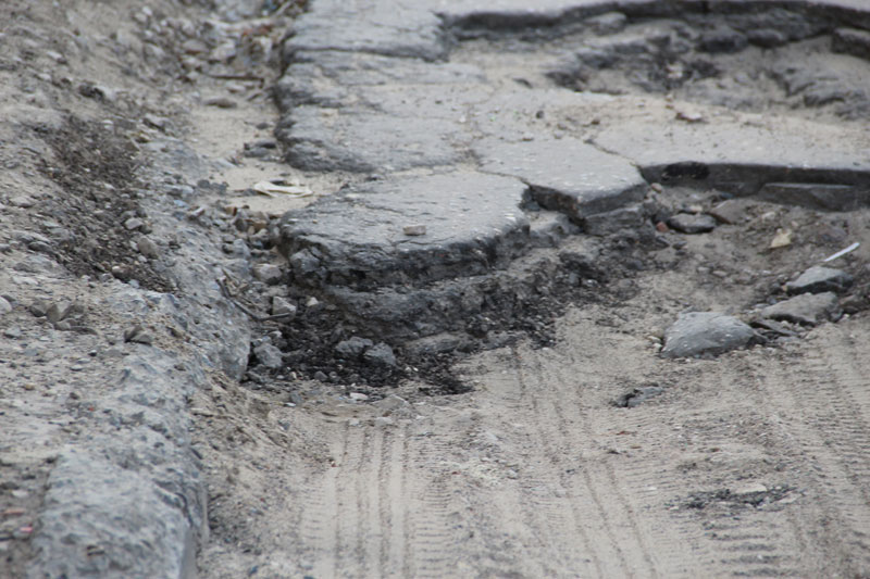 По своим размерам и насыщенности, они не соответствуют ГОСТу Р 50597-93. И мы помним, что устраняться, согласно пункту 3.1.1, повреждения должны максимум в десятидневный срок. Но пока у граждан есть время насладиться слоями асфальта, как на археологических раскопках. Например у дома №3.