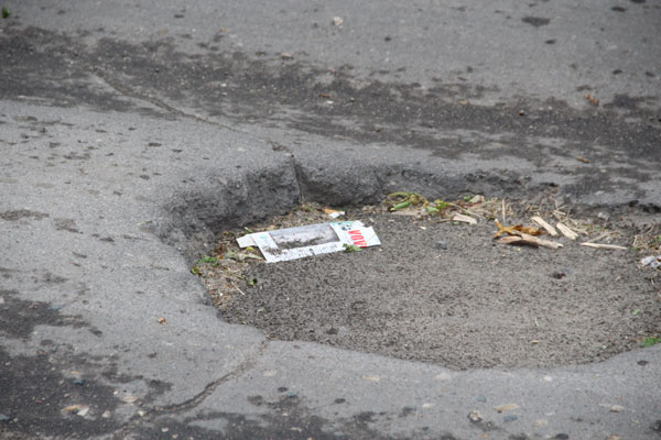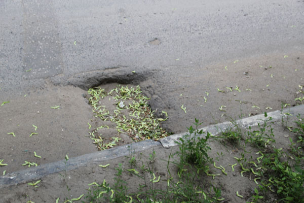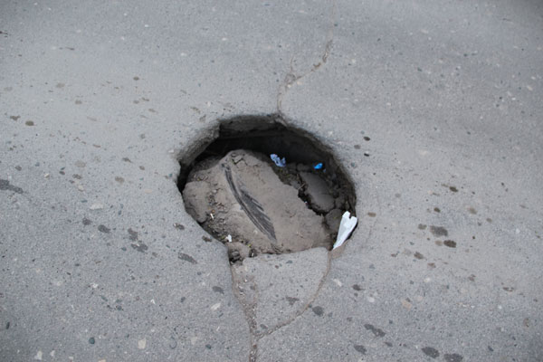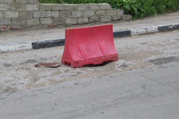 Отметим еще один люк, который находится рядом с Лунной, прямо по середине дороги, и уже готовится повторить судьбу своего собрата.
