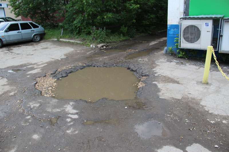 И действительно, дорога между домами по Тархова 18, 18а и 18б выглядит, как будто на ней велись боевые действия. А ведь этой дорогой пользуются жители и других многоквартирных домов 6-го квартала.