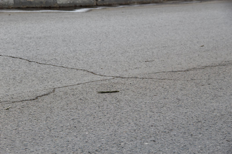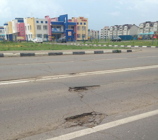 Улицу Исаева в 2014 году от Муленкова до Автомобильный ремонтировала фирма ООО «Викинг». И нормативам ГОСТа она соответствует, но следы начавшихся разрушений дорожного полотна уже заметны. Это продольные, а местами и поперечные трещины. Некоторые из них, как у дома номер 9 по улице Исаева, уже начинают превращаться в выбоины.