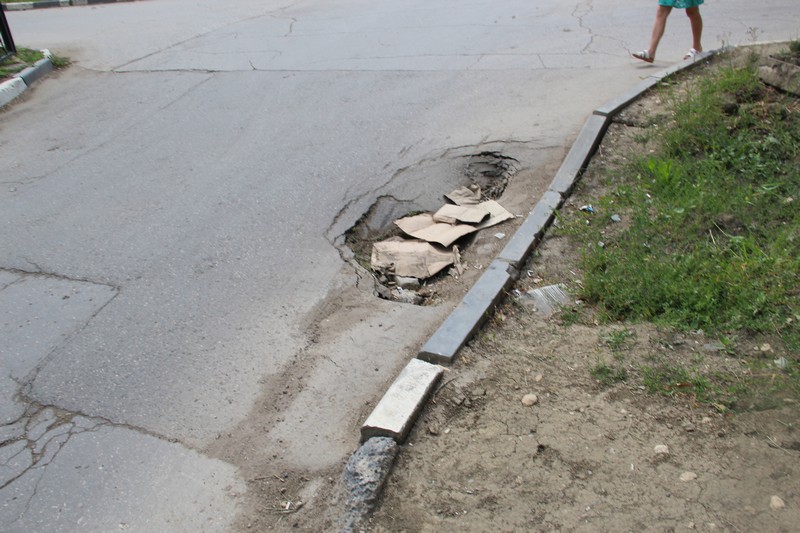 В начале сквера имени В.И. Чемодурова, прямо на пешеходном пешеходе образовался провал, в который смело может провалится колесо, даже если это колесо от Камаза.
